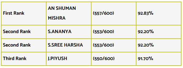 First Rank AN SHUMAN MISHRA  (557/600) 92.83%